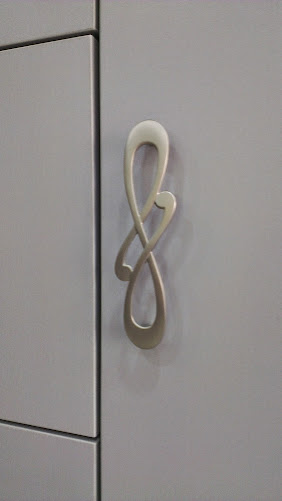 紅酒櫃下斜層板特寫(左) 8字型把手特寫(右)